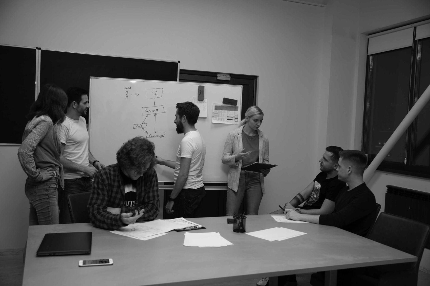 - The outsourcing product development team consisted of twelve people in the active development phase.